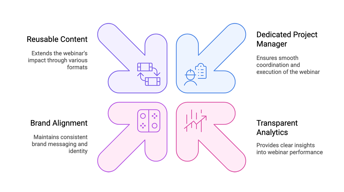 Every co-branded webinar comes with a dedicated project manager, transparent analytics, and full brand alignment — ensuring a smooth, co-created growth journey.