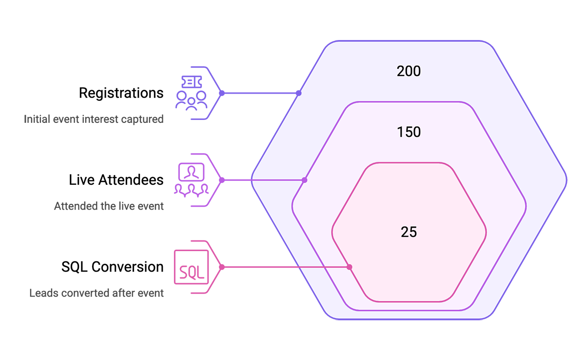 Audience Mapping – Use firmographic and intent data to target 2,000–3,000 prospects for 50–150 attendees.
