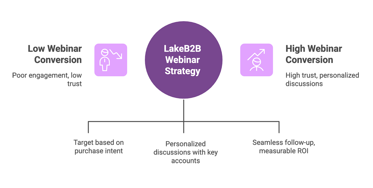 With LakeB2B’s Co-Branded Webinar Initiative, you don’t chase thousands of generic leads. You engage 50–150 ideal prospects in meaningful conversations that build trust and accelerate deals. Together, we’ll double your reach — and your results.