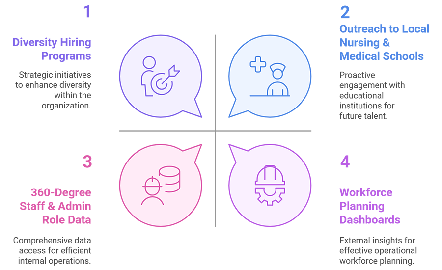 - Outreach to Local Nursing & Medical Schools: Campaigns to 3,400+ educational institutions for early pipeline development