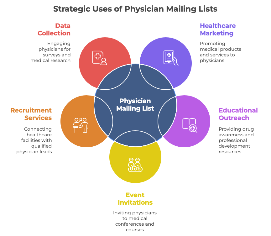 Physician email list is a database that offers email addresses, phone numbers, social media info, postal address details, and other relevant information of physicians for targeted marketing campaigns.