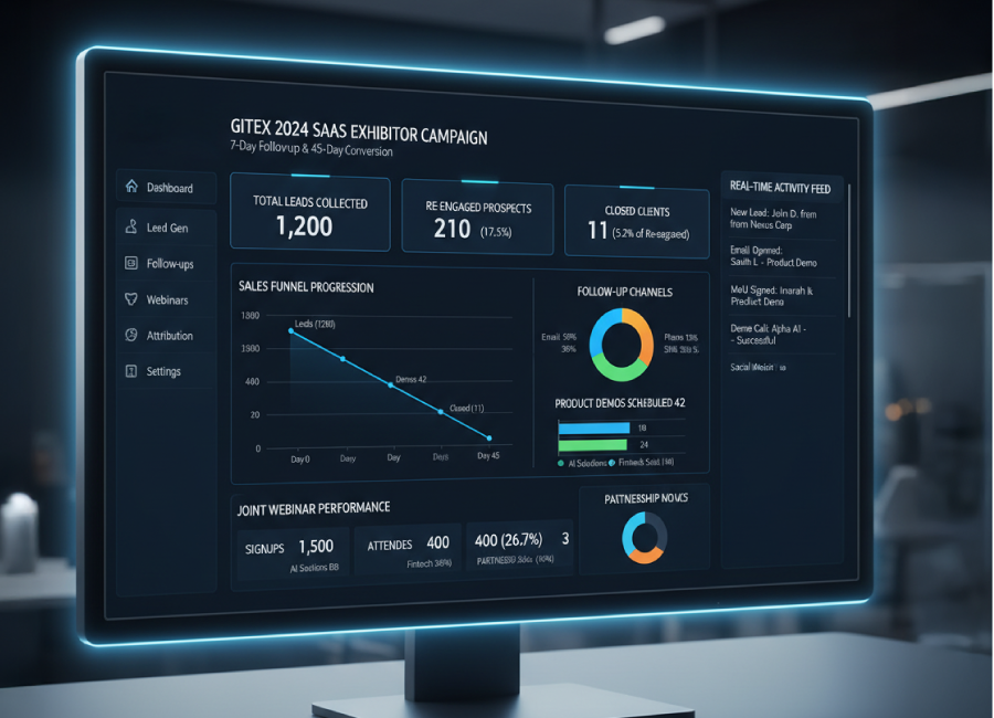 The measurable impact of LakeB2B’s system speaks volumes. A SaaS exhibitor at GITEX 2024 collected 1,200 leads and executed a four-channel follow-up campaign within seven days using LakeB2B. The result: 210 re-engaged prospects, 42 product demos, and 11 closed clients within 45 days. Similarly, two exhibitors—an AI solutions provider and a fintech SaaS platform—used LakeB2B’s collaboration engine to co-host a joint webinar, generating 1,500 signups, 400 attendees, and three partnership MoUs. ROI dashboards track every interaction, attributing value to each lead source and engagement type, proving that LakeB2B doesn’t just promise results—it delivers them.
