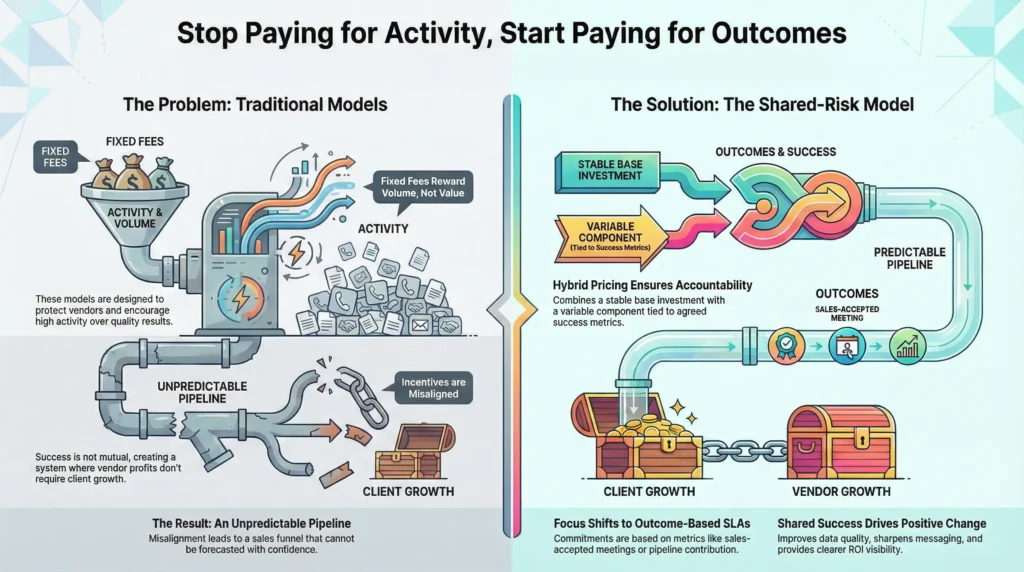 Most outsourced demand and sales programs are designed to protect vendors, not outcomes. Fixed fees reward volume. Pure performance models encourage shortcuts. Neither creates durable pipeline you can forecast with confidence.