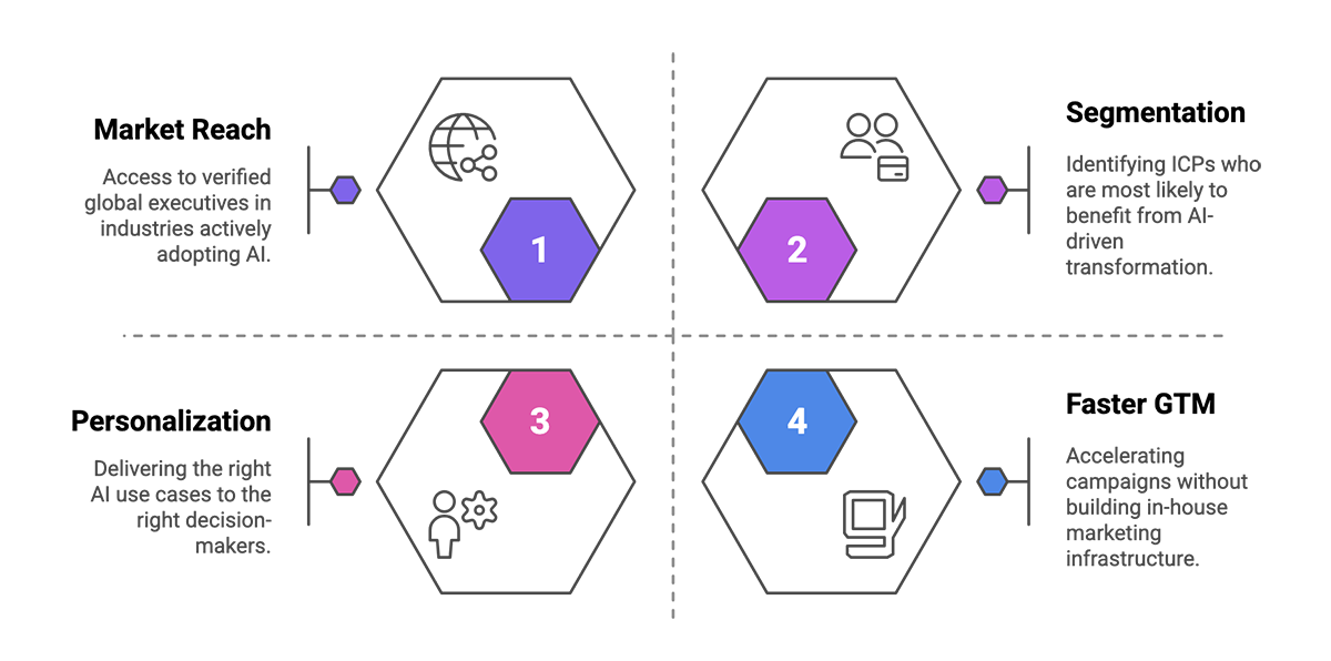 • Market Reach – Access to verified global executives in industries actively adopting AI.